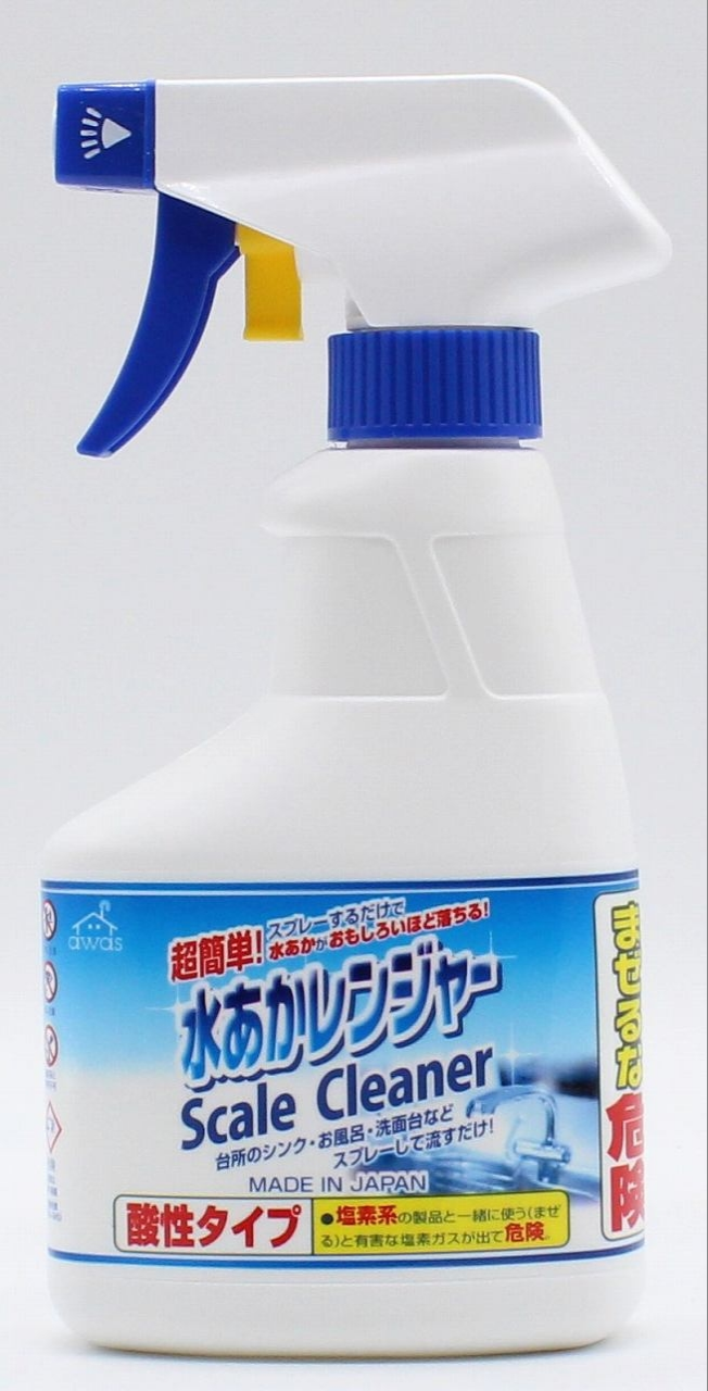 台所のシンク、お風呂、洗面台等の水あかをスプレーするだけで簡単に落とします