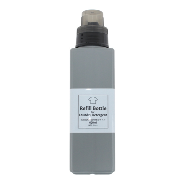 ■洗濯洗剤用詰め替えボトル600ml角型グレー